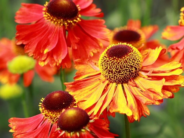 W naturze ich kwiatostany o charakterystycznych wypukłych środkach rosną na trawiastych preriach obu Ameryk. U nas rustykalna uroda dzielżanów Helenium była tradycyjnie kojarzona z sielskim wiejskim pejzażem. Dziś byliny te znów powracają do łask. Ich okazałe kępy osiągają od 50 do niemal 200 cm wysokości. Choć główny okres kwitnienia dzielżanów przypada na drugą połowę lata, to jeśli odpowiednio dobierzemy odmiany, będziemy mogli cieszyć się pięknem ich kwiatów od połowy czerwca do października. Dziś, dzięki wysiłkom szkółkarzy, mamy do wyboru odmiany o płatkach w odcieniach pomarańczowego, żółtego, czerwieni, a także dwubarwne, często o kontrastowo wybarwionych koszyczkach. Doskonale nadają się do wazonu. Jesienią wcale nie musimy się z nią rozstawać - suche owocostany tych roślin do wiosny będą urozmaicać zaśnieżony ogród. Bez tych spektakularnych roślin nie nożem się obyć żadna słoneczna rabata. Są stworzone, by brylować wśród traw ozdobnych, jeżówek, szałwii, przetaczników i pysznogłówek. Równie korzystnie wyglądają na wiejskich grządkach kwiatowych, obok małe i kosmosów. Efektywnie kontrastują z roślinami o niebieskich lub fioletowych płatkach, jak ostróżka lub dzwonek skupiony. Ciekawy pokrój i zimotrwałe owocostany dzielżanów ożywią minimalistyczny klimat ogrodów nowoczesnych.